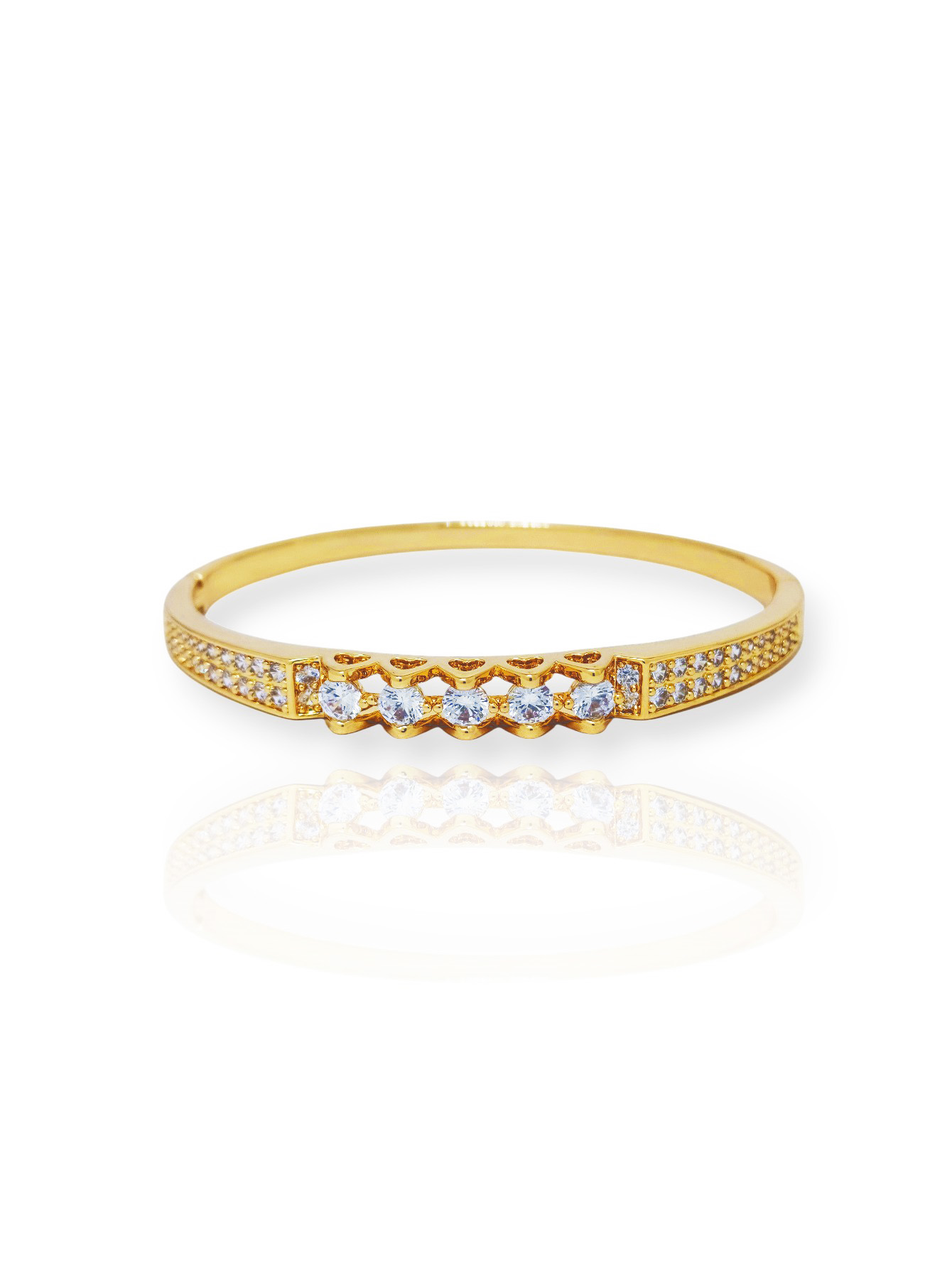 Elegante e sofisticada, esta pulseira tipo bracelete é a escolha perfeita para quem busca brilho na medida certa. Seu design clássico ganha destaque com zircônias cuidadosamente cravejadas na parte frontal, criando um efeito luminoso e refinado que valoriza qualquer produção.